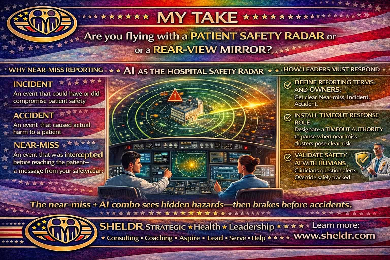 I use a radar analogy on purpose. In aviation, crews do not wait for a crash report to improve flight. They run on radar, checklists, crew communication, and disciplined escalation. Healthcare needs the same posture. Near-miss reporting forms radar returns. It shows weak signals early, often before injury, death, or headline. A near-miss means the system almost failed, then got saved by luck, vigilance, or an informal workaround. Leaders can treat it as a gift or as noise. High-reliability organizations treat it as a gift.